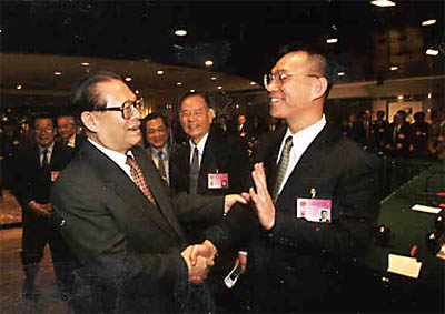 江泽民主席在政协九届三次会议上亲切会见林毅夫教授