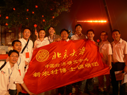 7月25日凌晨,北京大学新农村博士调研团顺利抵达河南省新县,受到了当地政府的热情接待。当天上午,调研团的同学们和当地政府官员举行了座谈会,新县县长级干部匡胜良及新县教育、卫生、建设、信用社等各部门领导参加了这次座谈,信阳市市委书记刘怀廉也专程出席了座谈并做了讲话。座谈会上,同学们和当地领导就当地的农民增收、农业发展、农村建设等问题展开讨论,整场座谈在一片轻松热烈的气氛结束。当天晚上,博士调研团成员还参加中央电视台举办的“重访大别山 建设新农村”特别节目的录制。