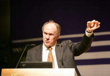 由香港上海汇丰银行有限公司与北京大学经济研究中心共同设立的“北大 - 汇丰经济论坛”今日下午在北京大学举行,论坛特邀2004年诺贝尔经济学奖得主爱德华·普雷斯科特 (Edward Prescott) 教授作演讲。