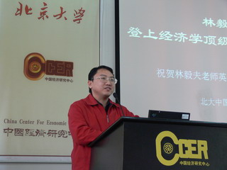 接下来,陈平教授也发表了一些看法。他谈到,林老师在马歇尔讲座上所取得的巨大成功,说明了三个问题。首先,在很长一段时间以来,西方的主流经济学理论太过于注重数学技巧的应用,而忽略了对现实世界的观察和了解,而林老师这次马歇尔讲座能获得成功,表明学术界正在开始反思,从复杂的、纯粹的数学拓展游戏像基于现象本身观察的,简单的,直观的,但却有力的理论回归。其次,林老师的理论在国际上得到的认可要比其在国内所受到的认可要高,这也说明不少国内学者的研究方向和学术标准存在问题。最后,他建议中心的学者之间应该有更多的交流和碰撞。