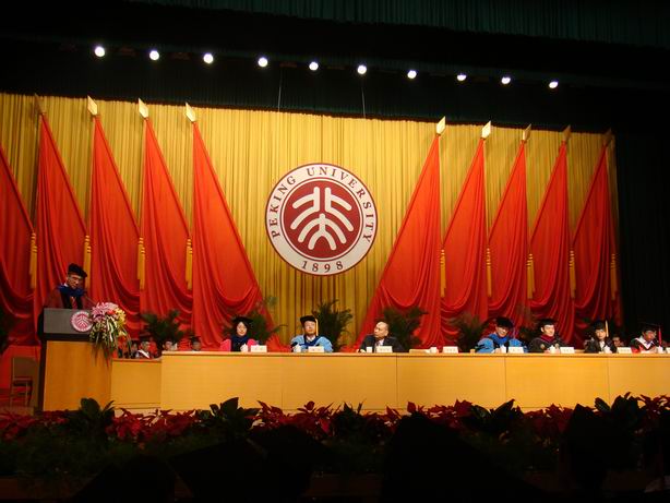上午九点整,北京大学中国经济研究中心·北大国际MBA(BiMBA)2008届毕业典礼在一阵雄壮的军乐声中正式开始。中心的教授及学生代表落座于主席台上,观众席上也坐满了等待收获自己丰硕果实的学子和他们满怀欣喜与自豪的家人。