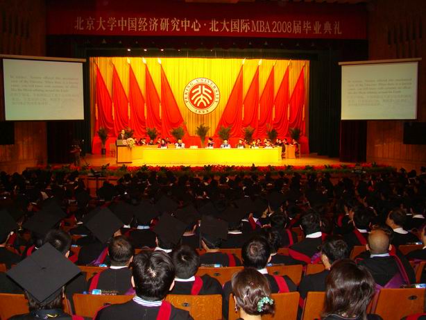 5月31日上午,北京大学中国经济研究中心(CCER),北大国际MBA(BiMBA)2008届毕业典礼在北京大学百年讲堂隆重举行。这是一个让所有人为之兴奋的时刻,特别是为了这一天而刻苦学习的同学和不辞辛劳传道授业的教授们,更是由衷的感到心潮澎湃。