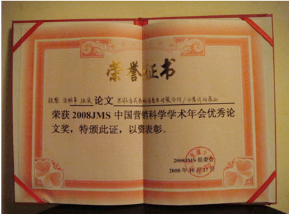 张黎教授获得2008年全国营销科学学会优秀论文奖
