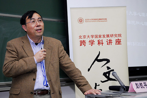 3月21日晚,由北京大学国家发展研究院主办的“人文与社会”跨学科系列讲座的第二讲“文化与心理:探索及意义”,在同学们的热切期盼中拉开帷幕。主讲人彭凯平为伯克利加州大学心理学系教授,清华大学经管学院和心理学系教授,主要研究领域集中在社会和文化心理学、行为经济、领导决策和跨文化沟通的心理学等方面,尤以跨文化心理的研究贡献著名。北京大学国家发展研究院汪丁丁教授依旧担任本场讲座的主持人。