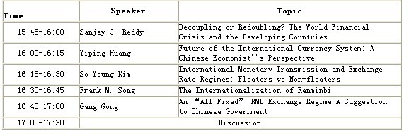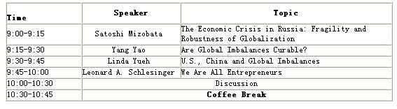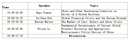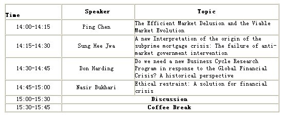 Venue: Four Seasons Hall, BaFang Garden, Diaoyutai State Guest HouseSession 1 The Financial Crisis and Economic Theories