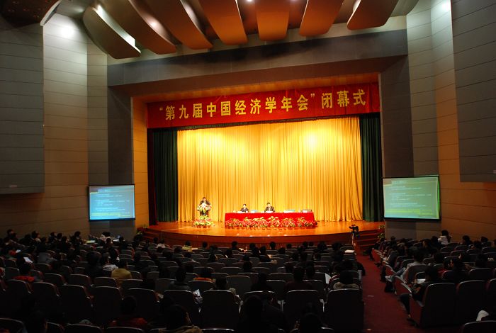 在接下来的闭幕式上,中国经济学年会秘书处秘书长巫和懋教授对本次年会给予了充分的肯定并对年会的发展寄予更高的期望。巫和懋秘书长还宣布了12日下午理事会上产生的两个决议:明年的第十届中国经济学年会将在河南郑州召开,由河南财经学院与中国经济学年会秘书处共同举办;今后中国经济学年会秘书处将搭建经济学教学科研人才的招聘平台,欢迎各个经济学院系和相关研究机构将人才招聘信息发送到年会秘书处或中国经济学教育科研网,中国经济学年会秘书处将在中国经济学教育科研网上及时发布,第十届中国经济学年会也将举办经济学教学科研人才招聘会。
