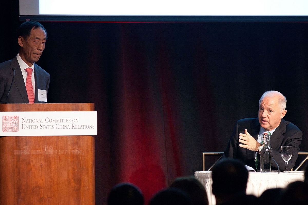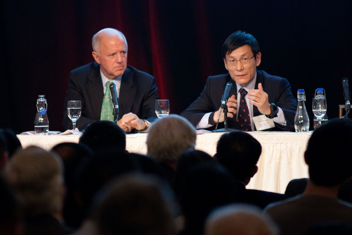 论坛有三个主讲嘉宾,第一位主讲嘉宾是刚刚卸任招商局集团董事长、现任中国博源基金会理事长的秦晓博士。秦晓博士以“中国经济下一个三十年”为主题,向美国听众坦言“未来中国经济发展的脚步会放慢”。他认为,未来30年中国的发展不能根据过去的脚步来推算,而是一个“有新特点的新时代”。 第二位嘉宾樊纲教授就”中美失衡的问题”以及汇率问题发表了自己的见解。第三位嘉宾中金公司总裁朱云来先生则谈及中国投资环境和投资机会,并表示随着交流的不断增加,中美两国之间未来有更多合作可能。朱云来还表示,从长期来看中国金融市场会更加开放,而未来中国的投资者也将有更多空间,可以到海外市场进行投资。