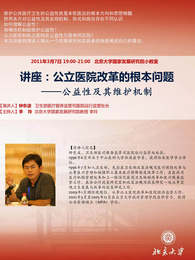 讲 座:公立医院改革的根本问题——公益性及其维护机制