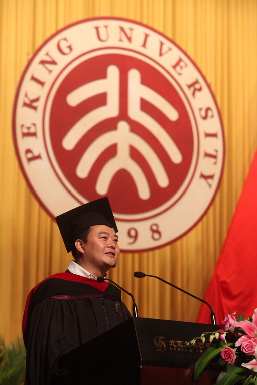 在这里,请让我们用最热烈的掌声来特别感谢北京大学国家发展研究院BiMBA所给予我们的思想财富,这将让我们受益终生。在离开大学校园十年、二十年之后,在人生已经步入三十而立、四十不惑的时候,我们选择重回大学课堂,放下企业高管、行业骨干、社会知名等等的名号,成为北大校园中MBA和EMBA的一名普普通通的学生,并且顺利地完成全部学业,现在回想起来真是不容易。
