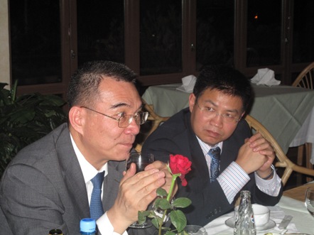20日晚,林毅夫与驻埃中资企业部分总经理共进晚餐并会谈,北大国际(BiMBA)2004级在职MBA校友周永生,作为中国交通建设集团驻埃国家经理、当地中资商会的副会长兼秘书长参加此次活动。林老师表示非常高兴在非洲碰见自己的学生。