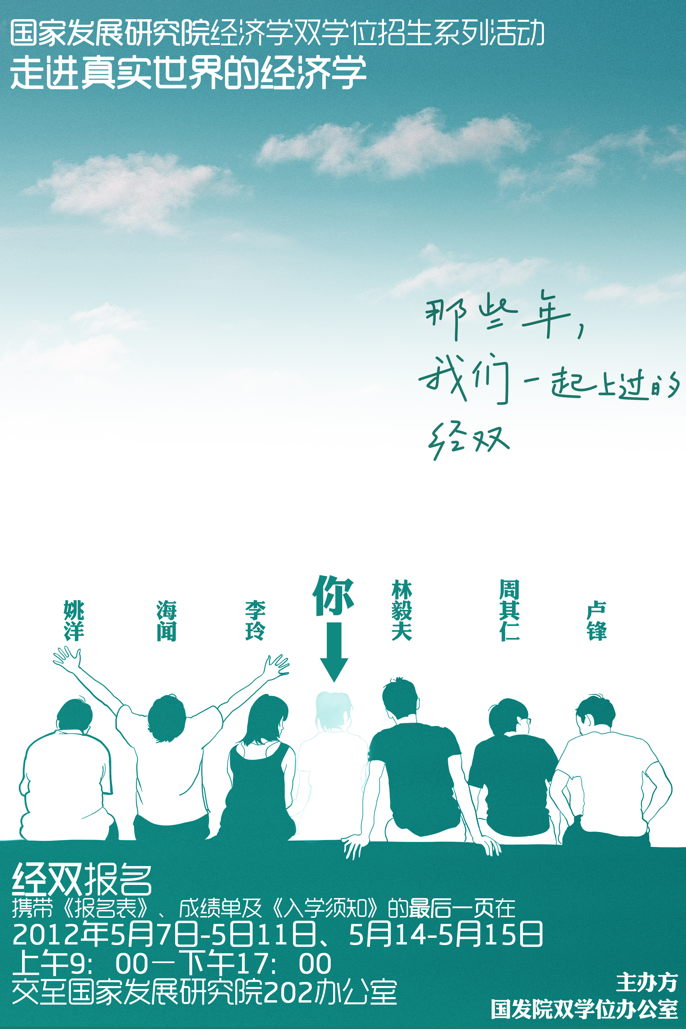 《北京大学申请攻读辅修/双学位报名表》须到主修院系的分管院长/系主任审核批准;《入学须知》请认真阅读后在签字确认页上签字。携带《报名表》、成绩单及《入学须知》的最后一页在2012年5月7日—5日11日、5月14—5月15日 上午9:00-下午17:00交至国家发展研究院202办公室,过期将不予接受。申请助学金的同学在网上填写报名表时请填写相关选项,同时须提交《北京大学本科生经济情况调查表》(复印件加盖院系公章)。