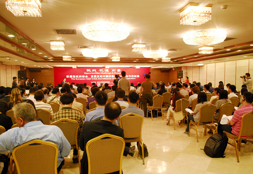 接着,中国国际友人研究会会长马灿荣先生致辞。他表示,欧洲债务危机是国际政治经济的重大事件,而中国是欧盟的密切合作伙伴,对欧债问题予以高度的关注。今天的会议将带给我们一个深入研究和探讨的机会。