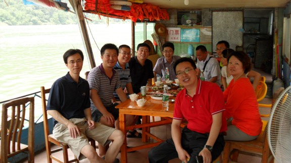 6月9日上午,从香港、深圳、广州前来的校友陆续到达清远。之后大家一起前往素有小三峡之称的北江。这里两岸高山耸翠,霞蒸雾绕,七十二峰参差对峙,起伏连绵数里,气势雄浑。校友还在游船上品尝了北江河鲜宴。