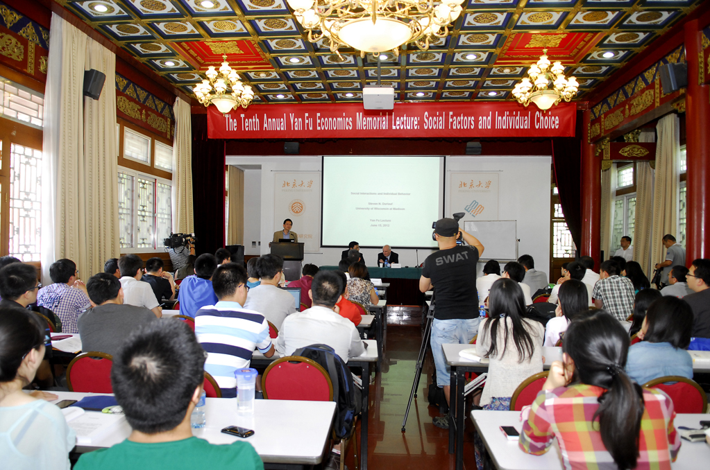 6月15日下午,第十届严复经济学纪念讲座在北京大学朗润园万众楼举行。本次讲座邀请到著名经济学家、执教于美国威斯康星大学的斯蒂夫•杜尔劳夫(Steven N. Durlauf)教授谈谈他的最新研究成果——社会互动和个体行为,从经济学视角来解读社会学问题。讲座由国家发展研究院常务副院长巫和懋教授主持,北京大学国家发展研究院名誉院长林毅夫教授出席了本次讲座。