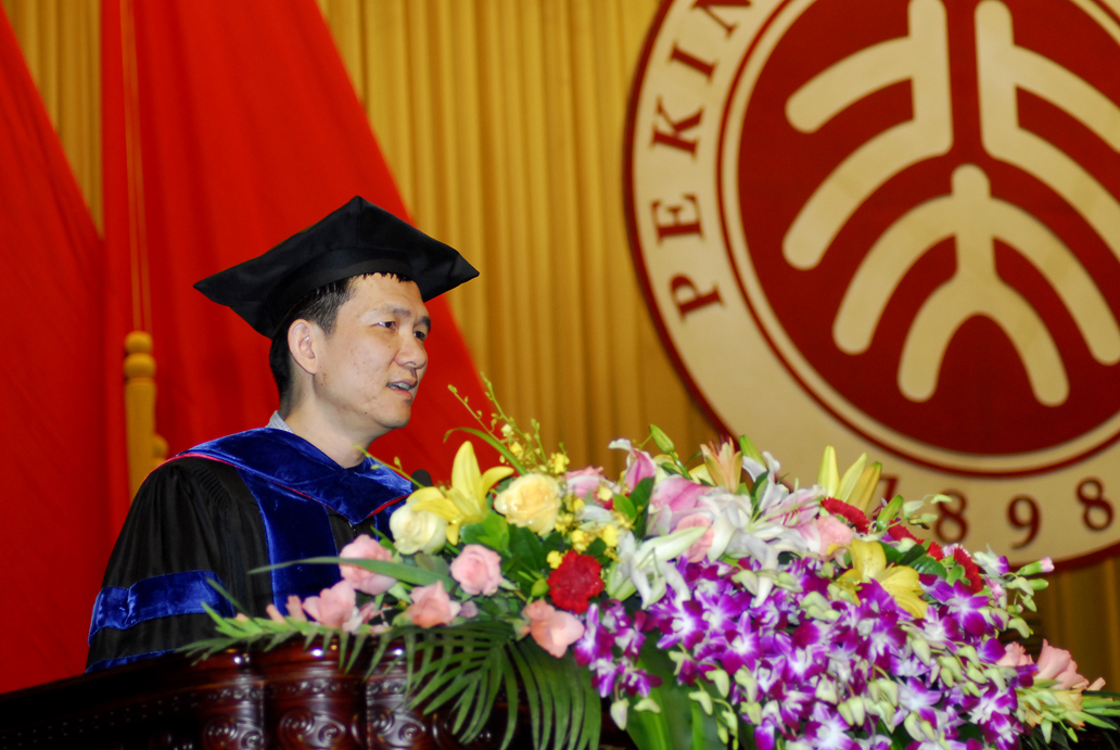 首先,我代表国家发展研究院,祝贺在座的810位同学成功完成经济双学位课程,获得经济学双学位学士学位;30位同学成功完成经济学双学位辅修课程,26位成功完成经济学硕士课程,获得经济学硕士学位,24位同学成功完成金融学硕士课程,获得金融学硕士学位;20位同学成功完成经济学博士课程,获得经济学博士学位;171位同学成功完成BiMBA课程,获得工商管理硕士学位;97位同学成功完成EMBA课程,获得工商管理EMBA学位。为了获得学位,同学们付出了艰辛的努力,几载严冬酷暑,见证了同学们在朗润园勤奋学习,刻苦钻研的足迹。我们的双学位课程不是安排在晚上,就是安排在周末,双学位的同学们要比其他同学付出双倍的努力。但是,同学们坚持下来了,从1996年创办至今,经济双学位已经培养了一万多名毕业生,他们遍布世界各地,各行各业。无论走到哪里,都有我们的经双同学的身影。经双同学们,我们为你们骄傲!