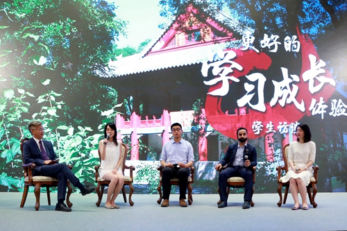 随后的学生对话环节中,国发院本科生代表邓弘毅、硕博学生代表梁方、来自阿曼的南南学院学生代表Nasser Alshaqsi和EMBA学员代表杜蕾就在国发院学习的感受、国发院最吸引自己之处等问题与听众进行了分享。师生之间的平等交流和国发人的家国情怀给邓弘毅留下了深刻印象;梁方认为在国发院踏踏实实做学问能够实现“比较优势”;Nasser则称赞国发院教授学识丰富、平易近人,让他在国发院找到了家的感觉,并表示愿意做联系和沟通两个国家的桥梁;杜蕾则在这里“重新认识了自己”,找到了内心的安宁。