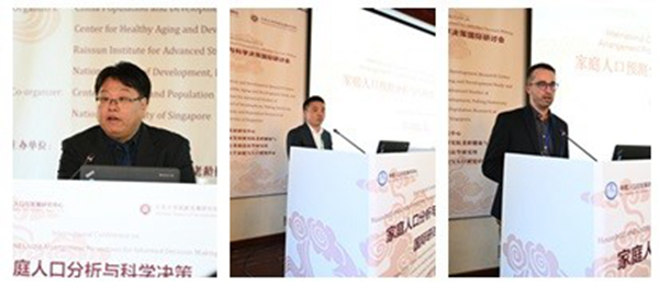 主旨报告嘉宾,从左至右依次为Jorge Bravo、张许颖、刘秀丽国际合作研究网络需要多个机构进行协调合作。来自中国人口发展研究中心的张许颖副主任、中国科学院数学与系统科学研究院的刘秀丽教授、新加坡国立大学家庭与人口研究中心的冯秋实副主任、美国人口委员会高级研究员及上海大学亚洲人口研究中心主任蒋耒文先生、魁北克大学博士及加拿大统计局分析师Samuel Vezina先生分别对各自的机构进行了简单介绍并表示愿意共同努力推动国际联盟的发展。新加坡国立大学的冯秋实副教授还表示希望明年能够在新加坡国立大学举办第二届“家庭人口分析与科学决策国际研讨会”。在各机构专家简单的介绍国际网络的构成之后,“家庭人口预测分析与可持续发展国际网络”正式成立。