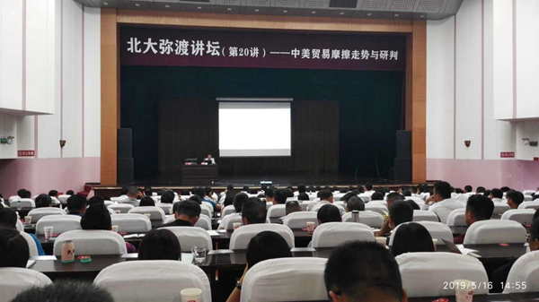 5月16日下午,北大国发院党委书记余淼杰教授在弥渡县会务中心作了题为《中美贸易摩擦走势与研判》的专题讲座,县委书记沙伟风、人大常委会主任舒平、政协主席罗鸿文以及县属有关负责同志等四百多人聆听了讲座。余淼杰教授运用大量的案例,从中美贸易摩擦的动态演变、正确认识中美贸易摩擦、量化分析中美贸易摩擦等角度对中美经济的影响、未来中美贸易摩擦走向的预测和研判等方面作了讲解。精彩的讲座使县里各级领导干部对中美贸易战和我国外贸行业状况加深了了解,进一步强化了“四个自信”、坚定了“四个意识”。