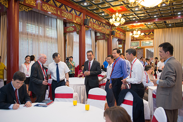 左起为海闻教授,马丁·费尔德斯,易纲教授、林毅夫教授、