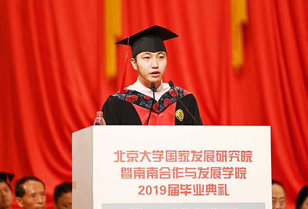 大家上午好!我是2013级国发院博士生张睿,很荣幸今天作为研究生的学生代表发言。几年前,我们踌躇满志,满怀期待地踏入朗润园;几年后的今天,我们从国发院毕业,奔向各自的前程。在这看似漫长但又如白驹过隙的几年时光里,相信在座的各位同学都或多或少地感受到了国发院的老师和身边同学们对自己的影响和改变。今天借这个宝贵的机会,我想简短地分享在过去的六七年间,在国发院学习生活的两点感悟。