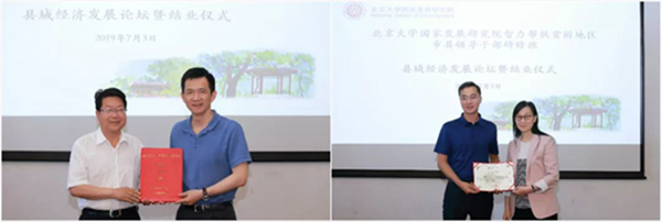 结业仪式最后一个环节,由北大国发院院长姚洋教授、北大国发院BiMBA商学院院长陈春花教授分别为本期研修班的各位学员颁发了结业证书,第二期国发院智力帮扶贫困地区市县领导干部研修班圆满落下帷幕。