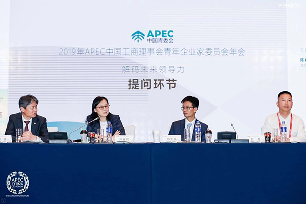 在数字经济的新时代,青年企业家领袖对整个社会发展必将拥有更大的权重。对于青年企业家领袖而言,如果培养面向未来的领导力就显得很重要。APEC在2018年正式成立了青委会,成员来自传统与新兴产业,包括京东数科CEO陈生强,天士力董事局执行主席闫凯境,北京大米科技有限公司(VIPKID)创始人、CEO米雯娟,新希望六和董事长刘畅,虎扑文化传播股份有限公司董事长程杭,果壳CEO、在行创始人姬十三等。因此,本次APEC工商领导人中国论坛还特别为青年委员举办了专场活动,并请陈春花教授为青年委员们做了专题讲座:面向未来的领导力。因为本次论坛在杭州举办,浙商总会青委会作为东道主也一同参与,使得这一讲座成为北大国发院、APEC中国青委会和浙商总会青委会共同主办的学习盛会。