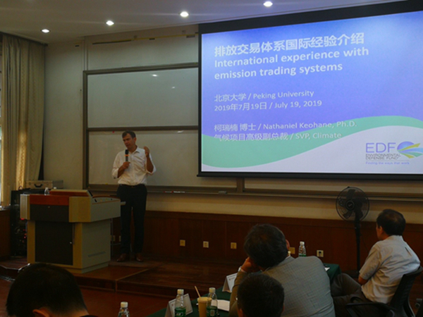随后,来自美国环保协会的气候项目高级副总裁Nathaniel Keohane(柯瑞南)博士介绍了排放交易体系的国际经验。柯瑞南博士首先介绍了排放交易体系的优势和成功特征,接着回顾和总结了美国、欧盟、韩国等国家碳市场以及区域合作的成功案例。经验表明,通过排放上限设置的逐步加强,碳市场能够随着时间推移而进化发展,实现有效的减排。
