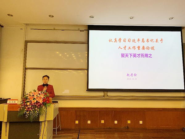 10月22日上午,国家发展研究院“不忘初心、牢记使命” 主题教育讲座在朗润园致福轩大教室举行,集体学习习近平总书记关于人才工作重要论述。教育部人才工作领导小组办公室原主任赵丹龄应邀做“认真学习习近平总书记关于人才工作重要论述——聚天下英才而用之”主题讲座。国家发展研究院党委书记余淼杰,党委副书记邢惠清、雷晓燕,教工党支部、学生党支部党员参加活动。讲座由余淼杰老师主持。