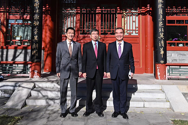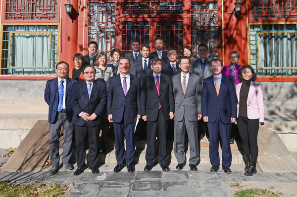 图:林毅夫教授、姚洋教授与中尾行长在朗润园