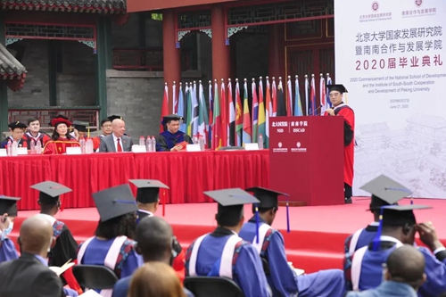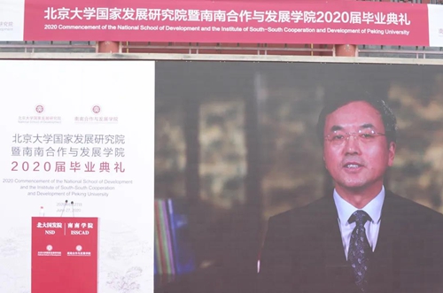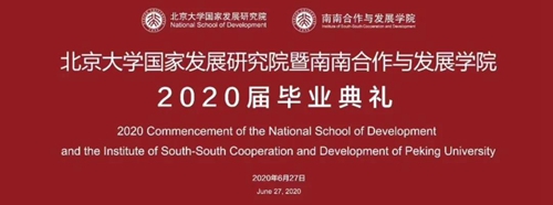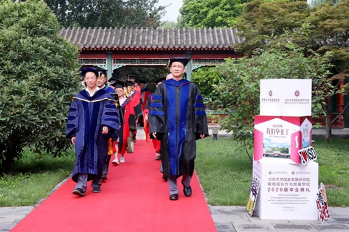 2020年6月27日,北京大学国家发展研究院暨南南合作与发展学院2020届毕业典礼隆重举行。受疫情特殊因素影响,2020届毕业典礼以线上线下融合的方式举办,国发院和南南学院按照相关防控部署返校的部分师生齐聚北大朗润园万众广场,未返校毕业生以视频分享或收看直播的方式参与,共同见证和成就一次非比寻常的毕业典礼。