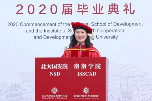 典礼第二项是院长致辞,北大国发院院长、南南学院执行院长姚洋教授表示,这次特殊的毕业典礼是相隔16年后重回朗润园举办,当初是因为学生规模小,伴随着国发院教学项目不断壮大,如今毕业生遍及全球。姚洋热烈祝贺今年毕业的933名毕业生,并特别强调,国发院今年的毕业生队伍中新增了29名本科生,除经济学之外,他们中还有同学会转入社会学、公共管理和国际关系领域继续深造,这正是国发院本科教育宗旨的体现。
