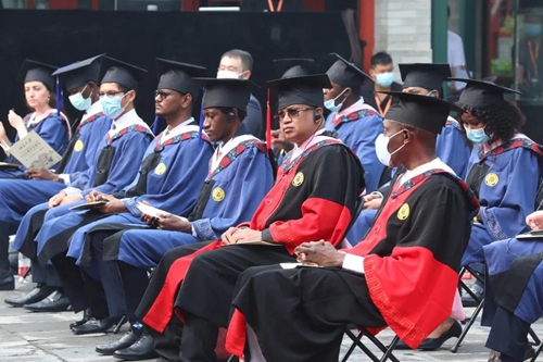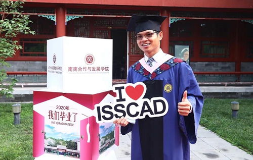 典礼现场的南南毕业生毕业典礼第九项是南南学院毕业生代表分享,来自马拉维的2017级博士毕业生Chigaru Farai Anthony Muga首先感谢中国政府和国家主席给予的支持。有感于理论和实践脱节的问题,他表示在南南学院的学习,目的之一就是要学会把理论、推论和实践结合,同时,也希望能从宏观和微观角度,更好地理解中国经济增长背后的秘密。深知每个国家的发展阶段有所不同,Muga也希望回国之后,能将所学致力于自己祖国的发展和壮大。