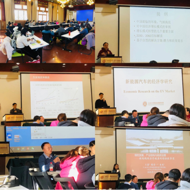 该系列研讨活动的第一场于11月30日下午举行,主题为“环境与能源研究与政策展望”,主要结合党的十九届五中全会提出的“十四五”规划和2035年远景目标,探讨我国在环境和能源领域的相关政策和研究问题。本次活动由国发院教师党支部和新结构经济学研究院党支部联合主办,由徐晋涛、王敏、颜建晔、邢剑炜老师和朱欢博士后主讲。国发院、新结构的教师、同学共同参加研讨。活动由国发院教师党支部书记张丹丹主持。