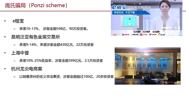 随后黄老师对电信诈骗(Wire fraud)、庞氏骗局(Wonzi scheme)及杀猪盘(PUA Pick-up artist)三种典型金融诈骗类型及案例进行详细介绍。