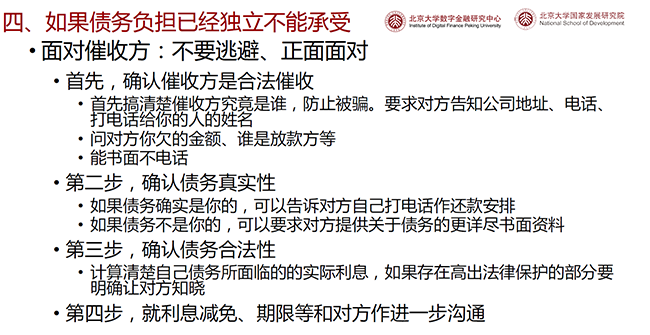 沈艳老师建议,对待无法独立负担的债务不应逃避忽视问题、更不能冒风险向不正规金融机构贷款;而是应当正面催收方、确认债务真实合法并进行沟通协商,同时和亲人积极沟通、获取支持并重建信任关系。
