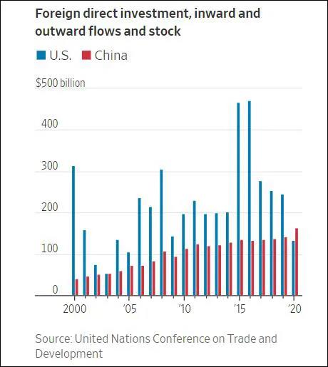 观察者网:根据联合国最新数据,中国超过美国,成为2020年全球最大的外国直接投资(FDI)流入国。这一方面是因为疫情影响,导致美国下降了50%,英国、意大利下降100%。但另一方面,是否也体现了中国取代美国的长期趋势?