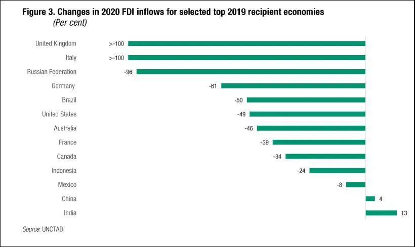 全球主要经济体去年普遍出现FDI流入大幅下降