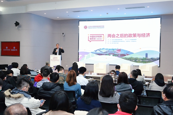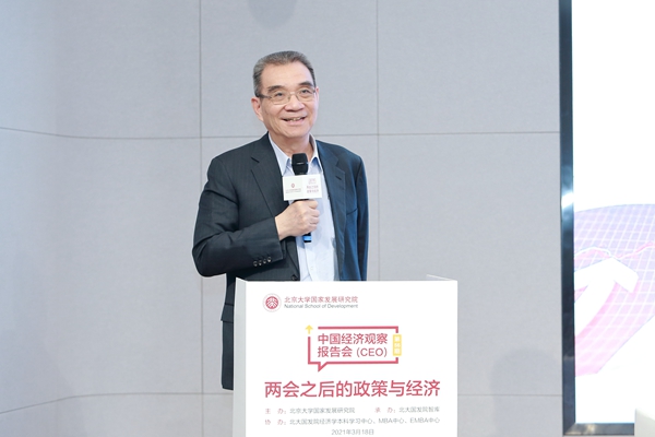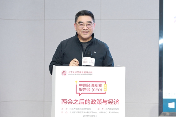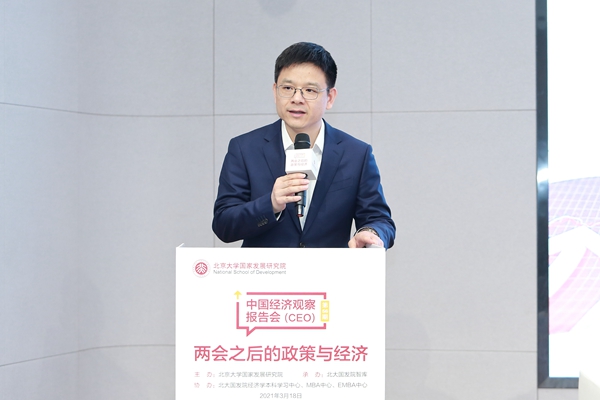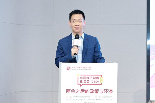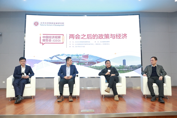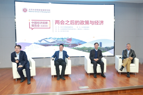 2021年3月18日下午,北大国发院举办中国经济观察报告会第56期活动,并同步在北大科技园北领讲堂和线上直播平台进行。活动由北大国发院、中国经济研究中心(CCER)等联合主办,以“两会之后的政策与经济”为主题,涵盖中国经济的新挑战、新发展格局、国际收支与汇率、金融开放等众多两会要点和热点,北大国发院相关领域的七位教授联合解读并做问答,成为2021年两会之后的政策与经济研讨盛会。