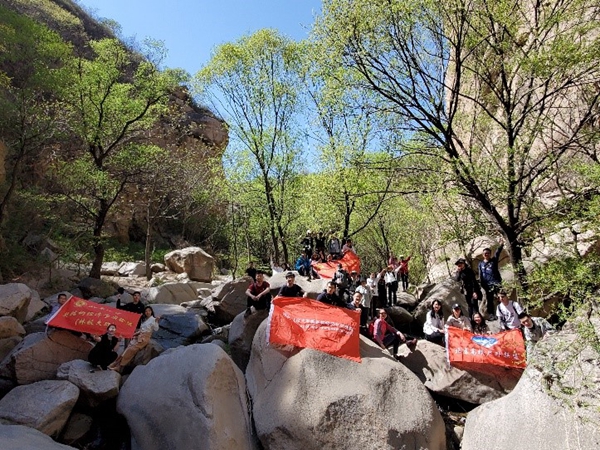 由于黄花城水长城区以奇而著称,在徒步的过程中,需要趟水过河、踩石横跨,踏着沙石前行,不免容易滑倒、摔跤。团队成员自发地组成长队有序通过,互相提醒脚下应注意的地方,帮助和鼓励路上有困难的老师和同学,分享沿途看到的美丽景色,交流日常生活和工作的点点滴滴。此外,新结构院邀请了北京大学体育教研部的老师和北京大学第三医院的大夫带队,同时准备了急救药箱,为师生的徒步活动提供了充分的指导建议和安全保障。为时3小时的徒步过程中,欢声笑语,气氛融洽,大家脸上洋溢着轻松愉快的笑容。
