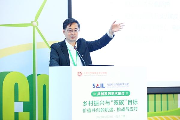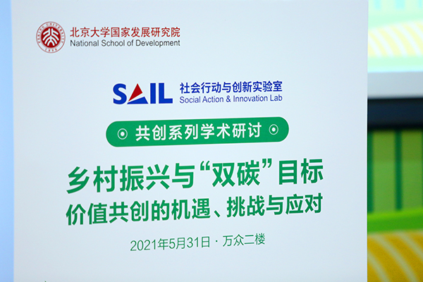 2021年5月31日下午,“乡村振兴与‘双碳’目标下价值共创的机遇、挑战与应对”主题研讨会在朗润园万众楼举行。此次研讨会由北京大学国家发展研究院、社会行动与创新实验室联合社会价值投资联盟共同主办。研讨会邀请到政府、企业、高校、研究机构和社会组织等各领域专家与领导出席,交流乡村振兴和“双碳”目标中的挑战、机遇,并探寻有效应对的创新思路。