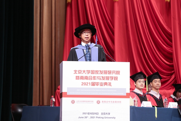 2021年6月26日,北京大学国家发展研究院暨南南合作与发展学院2021届毕业典礼在北京大学百周年纪念讲堂隆重举行。