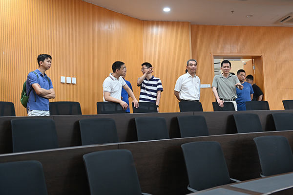 在地下一层的大报告厅,整体施工已经基本完成,林毅夫教授听取了报告厅的特色介绍。随后转到相邻的其他教室、贵宾室、餐厅等地方察看。