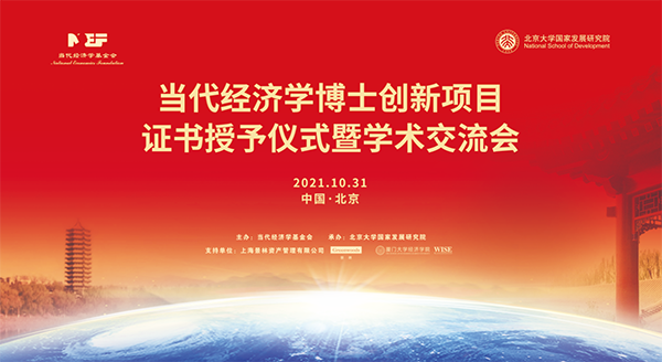 2021年10月31日上午,由当代经济学基金会主办、北京大学国家发展研究院承办的2021年当代经济学博士创新项目证书授予仪式暨学术交流会在北京大学国家发展研究院承泽园校区隆重举行。