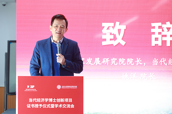 仪式在北京大学国家发展研究院姚洋院长热情洋溢的致辞中开幕。姚洋教授指出,中国本土经济学博士论文质量逐年提升,既得益于对国外先进研究方法的吸收,又离不开中国本土经济学的土壤。当代经济学基金会创办六年多来,在促进博士生科研、推动中国经济学繁荣发展方面做出了巨大贡献。