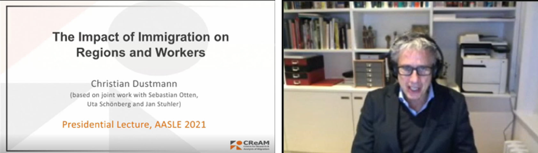 Christian Dustmann发表主席讲座本次会议于12月11日上午落下帷幕。亚澳劳动经济学会新任主席韩国首尔大学的Jungmin Lee教授进行了总结发言。他感谢所有特邀嘉宾和参会人员的热情参与,展望了未来两年AASLE的发展规划,并表达了希望在日本东京举办的2022年亚澳劳动经济学会年上能够与全球学者线下相见的愿望。大会为全球劳动经济学者搭建了一个沟通交流的国际平台,两天半的会议,高效、紧凑,平行论坛讨论热烈,Networking Session等促进学者线上自由交流的方式受到了参会者的一致好评。