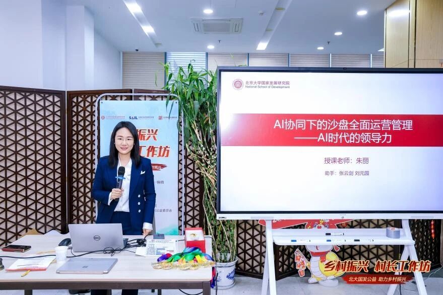 随后,北大国发院副研究员朱丽带领学员开展“沙盘+AI”创新课程,这一5.0版本的特色教学模式,通过模拟乡村产业项目全流程,让学员运用前面课程学到的“农业数字化”“集体经济运营”等理念,制定具体实施方案。朱丽老师还引入AI工具,指导学员通过数据模型分析村庄产业优势,优化资源配置方案,让科技赋能从“理论认知”转化为“实操能力”。