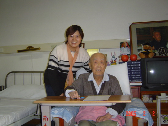 虽然老地学楼工作条件比较差,但我们和左邻右舍都相处得非常好。左边是王义遒老师的实验室,也有一伙年轻人无论白天黑夜都泡在实验室里工作,后据张佳利透露,那是个危险品实验室,门上画着骷髅和红叉子,当年也没人考虑对身体是否有危害。每当我们的电脑出现问题时,就会喊他们过来帮忙,小华老师那绝对是有求必应。右边几间办公室是校工会,自从和他们当上邻居,工会有活动就会带上我们。最难得是他们有间小会议室,遇到CCER有会议时,就去借用。后来我们用的次数越来越多,大有雀占鸠巢之势。我们还借用过一楼东面技物系和三层环境中心的会议室。朗润园里也有位很好的邻居--季羡林先生,他的房间与林老师的办公室隔着季荷遥遥相望。“朗润园”迎客巨石、“万众楼”牌匾都是季老先生给题写的。属于无心插柳,每当季老坐在书桌前工作时,抬头就正好看到他自己书写的“万众楼”三个字。天气好的时候,老先生会在朗润园里散步,偶尔走进我们院子,大家都会争着与他合影。院子里的石榴熟了,我们摘了先给他送去。《病榻杂记》收录的是季羡林先生自2001年住院之后写的散文,其中有篇《石榴花》,记录到朗润园他院门前那株石榴开花。