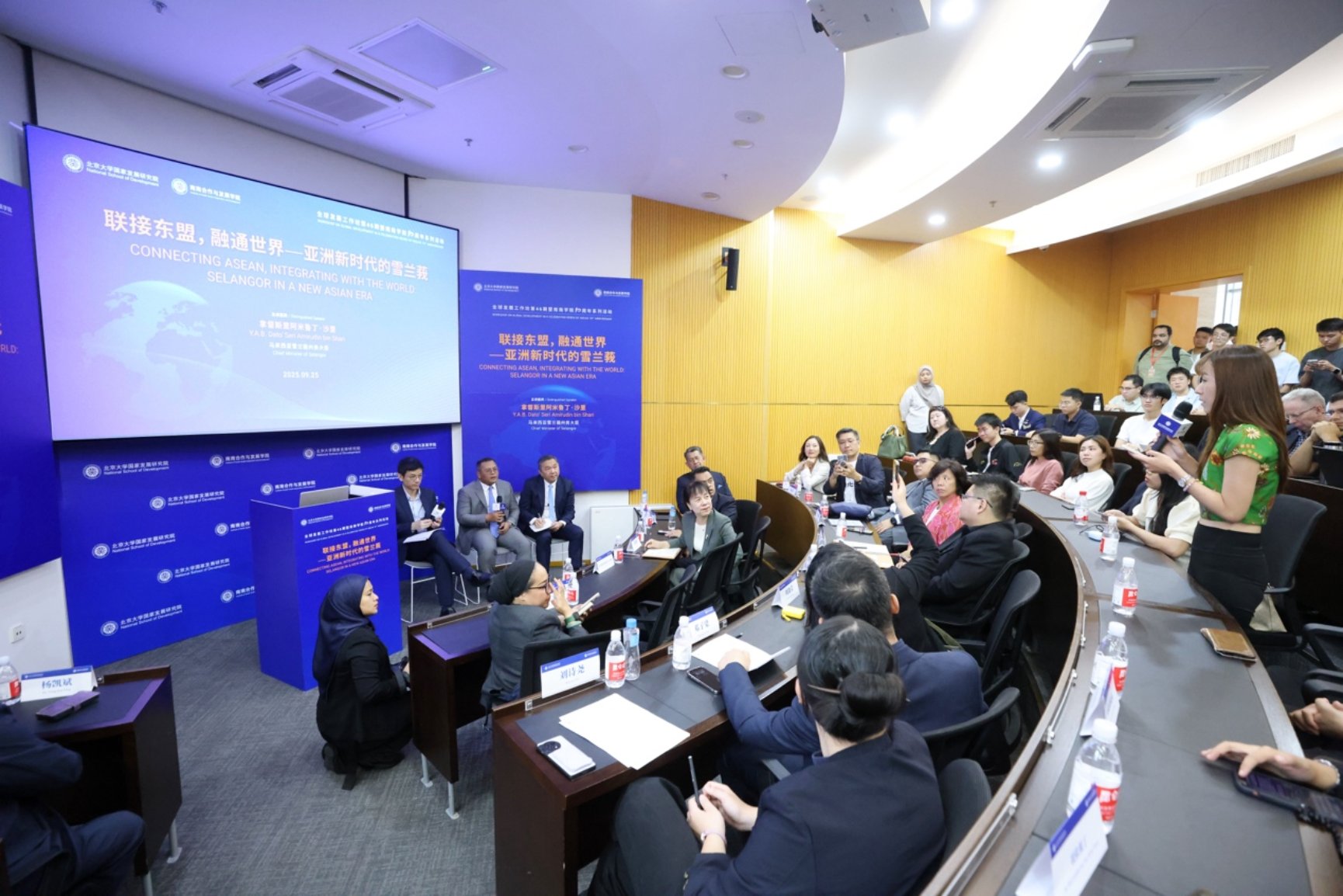 2025年9月25日,马来西亚雪兰莪州务大臣拿督斯里阿米鲁丁·沙利率领高级别代表团到访北京大学,与国家发展研究院(国发院)及南南合作与发展学院的领导与学者举行了深入会谈,并发表了题为“连接东盟,融通世界:新亚洲时代的雪兰莪”的主旨演讲,旨在深化双方在教育、科研及人才培养领域的合作,共同探索在全球多极化新秩序下的发展机遇。