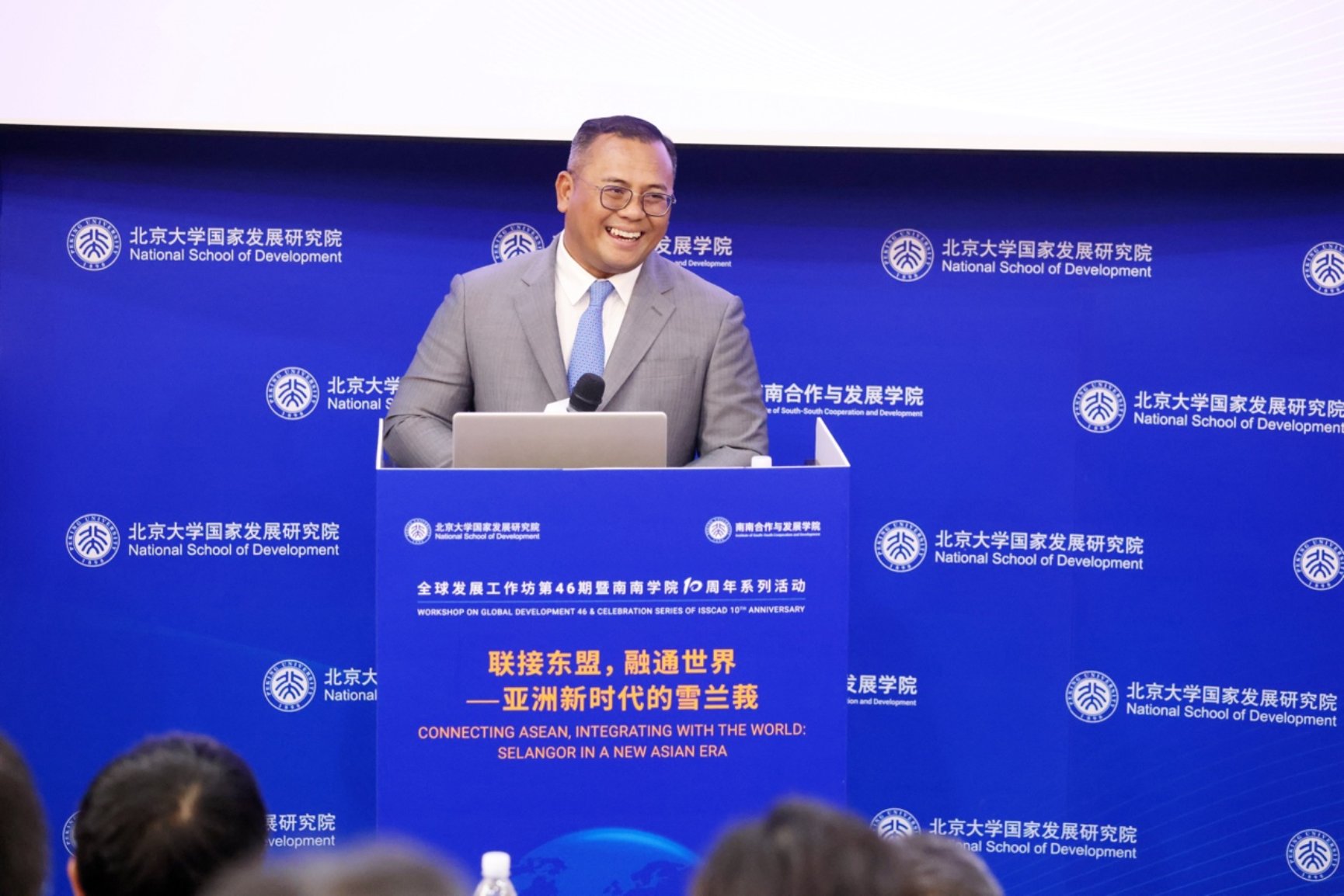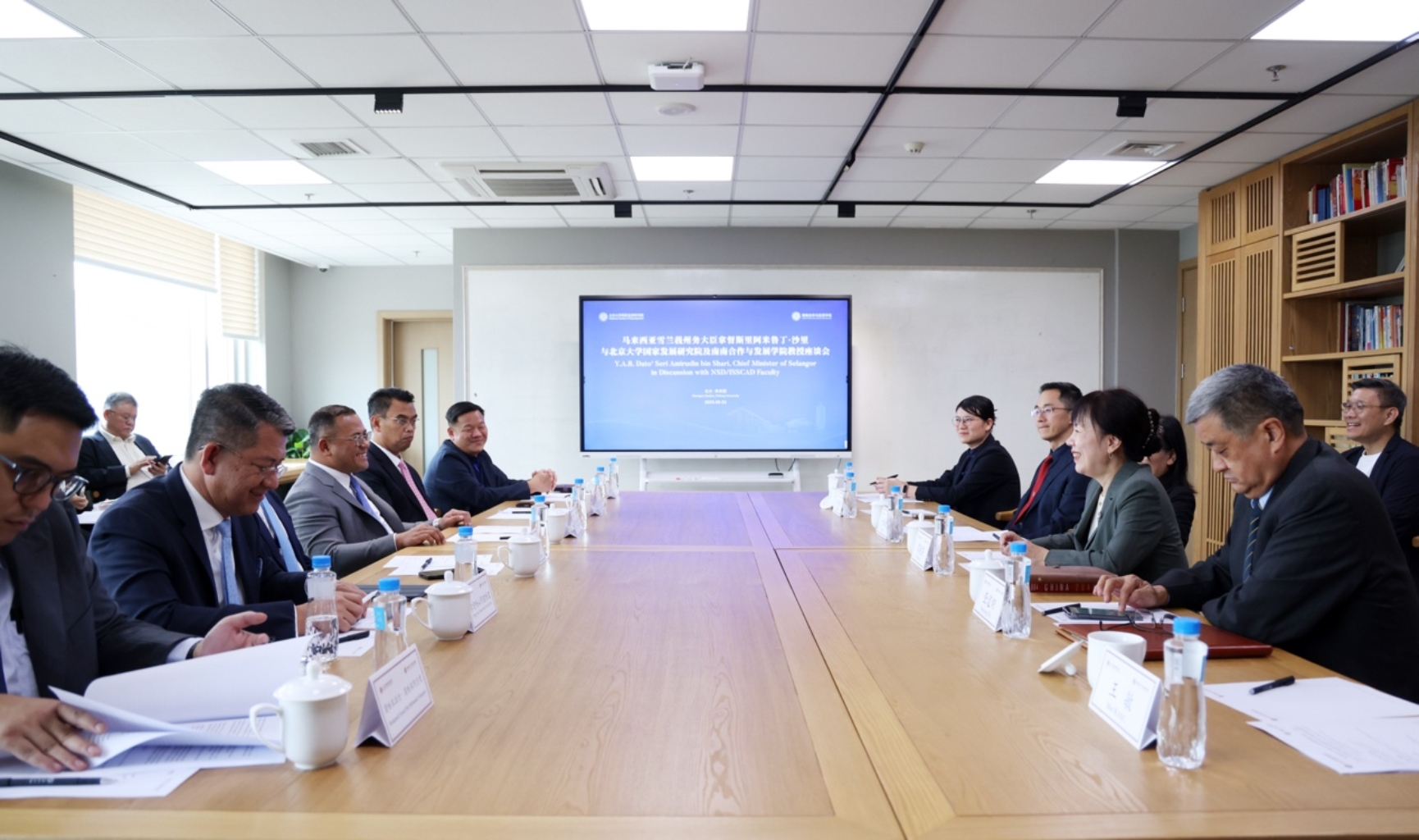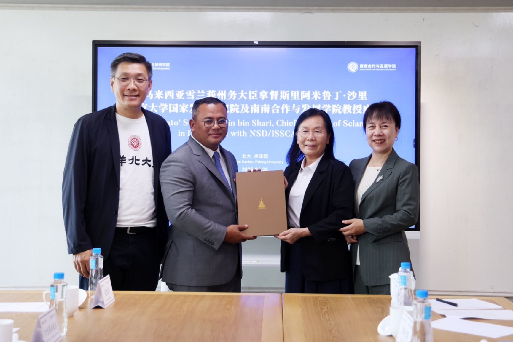 2025年9月25日,马来西亚雪兰莪州务大臣拿督斯里阿米鲁丁·沙利率领高级别代表团到访北京大学,与国家发展研究院(国发院)及南南合作与发展学院的领导与学者举行了深入会谈,并发表了题为“连接东盟,融通世界:新亚洲时代的雪兰莪”的主旨演讲,旨在深化双方在教育、科研及人才培养领域的合作,共同探索在全球多极化新秩序下的发展机遇。