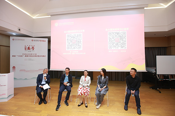 为此,活动围绕“展望‘十五五’要素市场化改革的重点与难点”主题,特邀北大博雅青年学者、国发院副院长张丹丹,北大博雅青年学者、国发院经济学教授李力行,北大国发院经济学长聘副教授张俊妮作精彩主旨分享,并邀请北大国发院EMBA2023级和EMBA2024级两名同学参加主题对话交流,他们分别是众拓营销公司整合营销事业部总经理杜文婷、山东华瑞集团常务副总经理刘磊。
